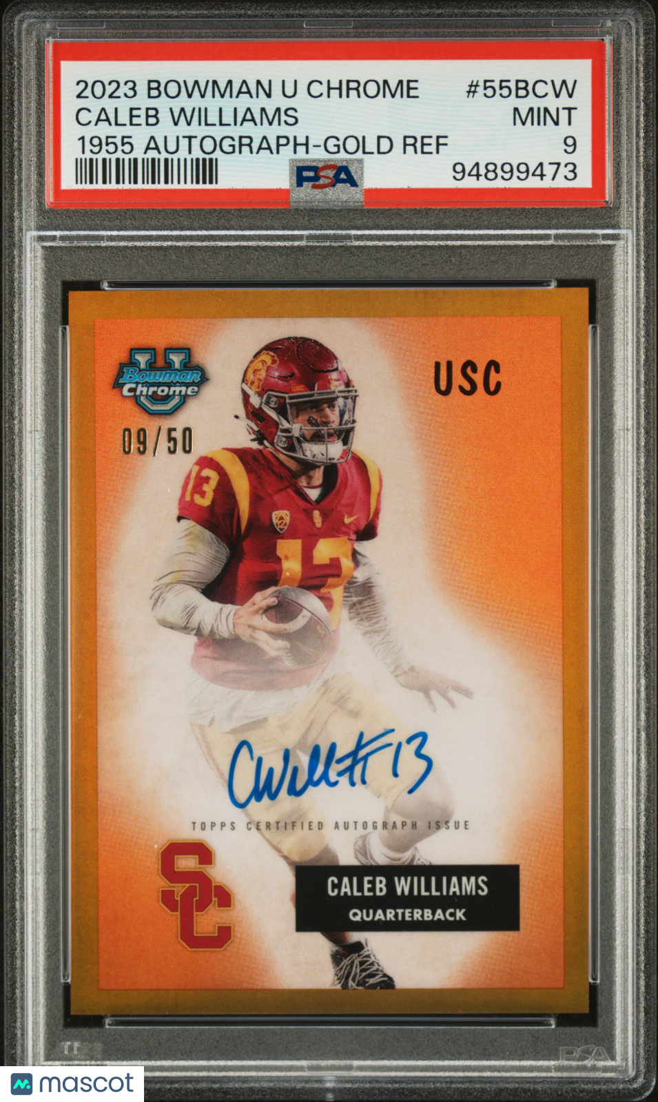 2023 Bowman University Chrome 1955 Auto Caleb Williams #55BCW Gold 09/50 PSA 9