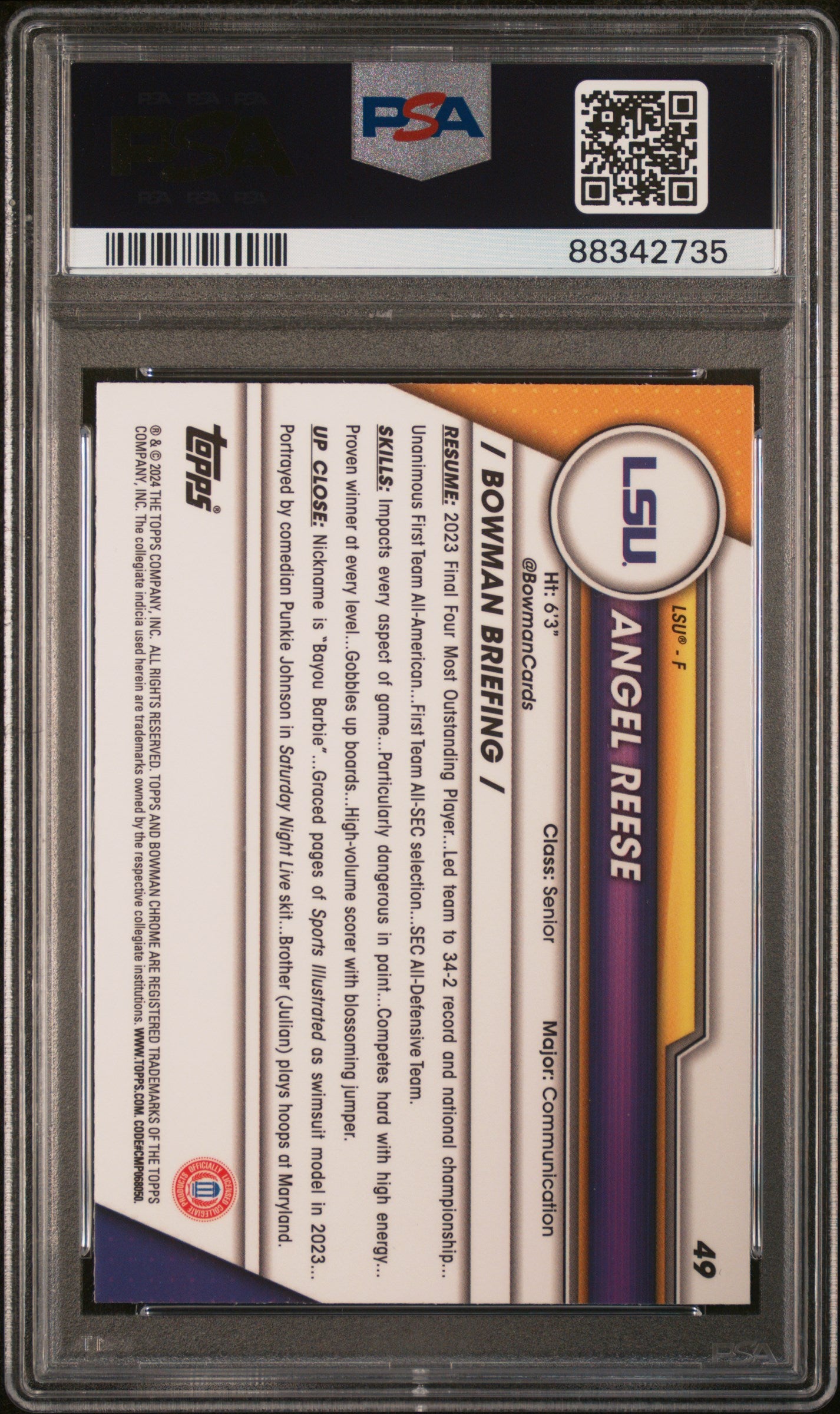 You are purchasing a 2023 Bowman University Chrome Angel Reese #49 Shimmer PSA 10. You will receive the exact item... Read more