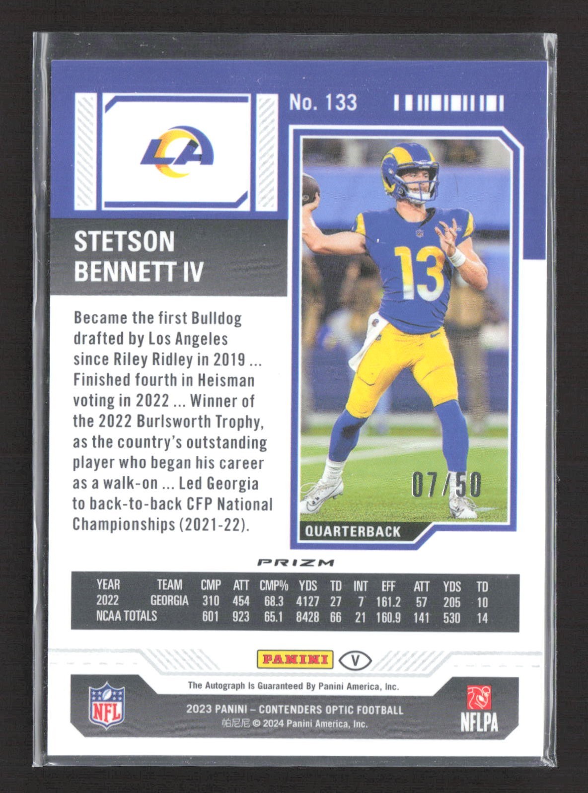 2023 Contenders Optic Rookie Ticket RPS Auto Stetson Bennett #133 Blue Prizm /75