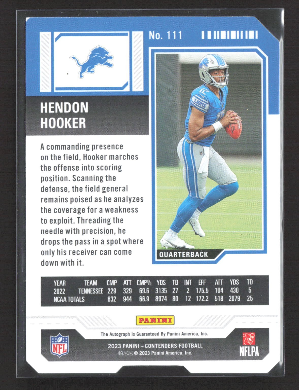 2023 Panini Contenders Hendon Hooker Rookie Ticket Stub Auto /12 #111