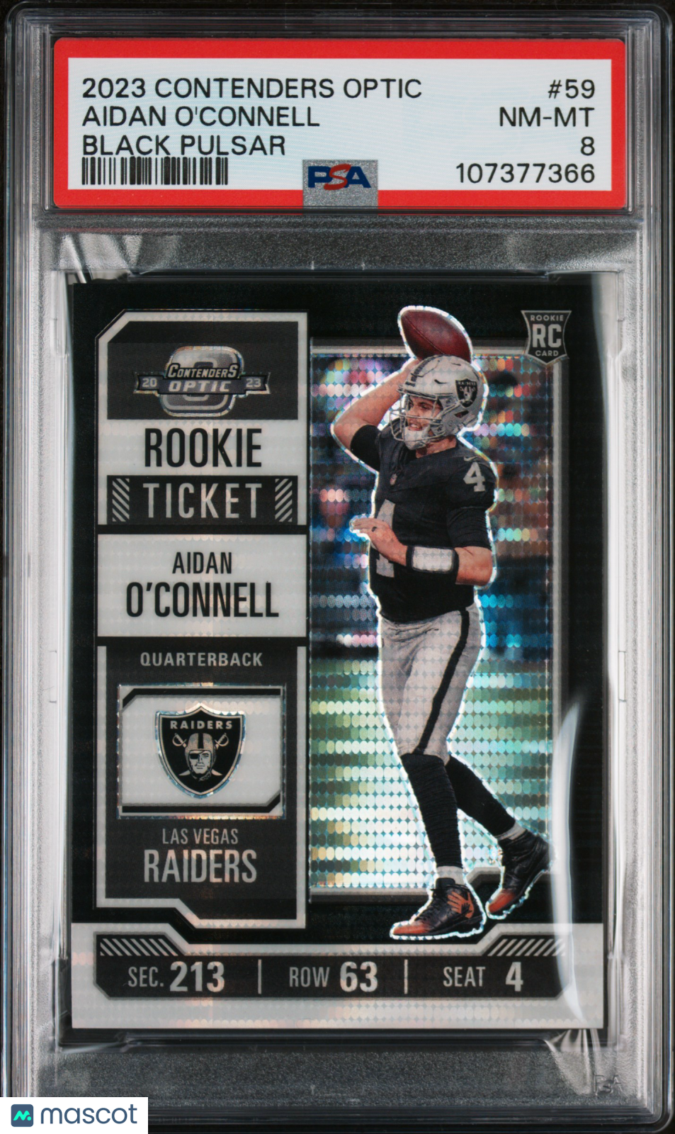 You are purchasing a 2023 Panini Contenders Optic Aidan O'connell #59 Black Pulsar PSA 8. You will receive the exact... Read more
