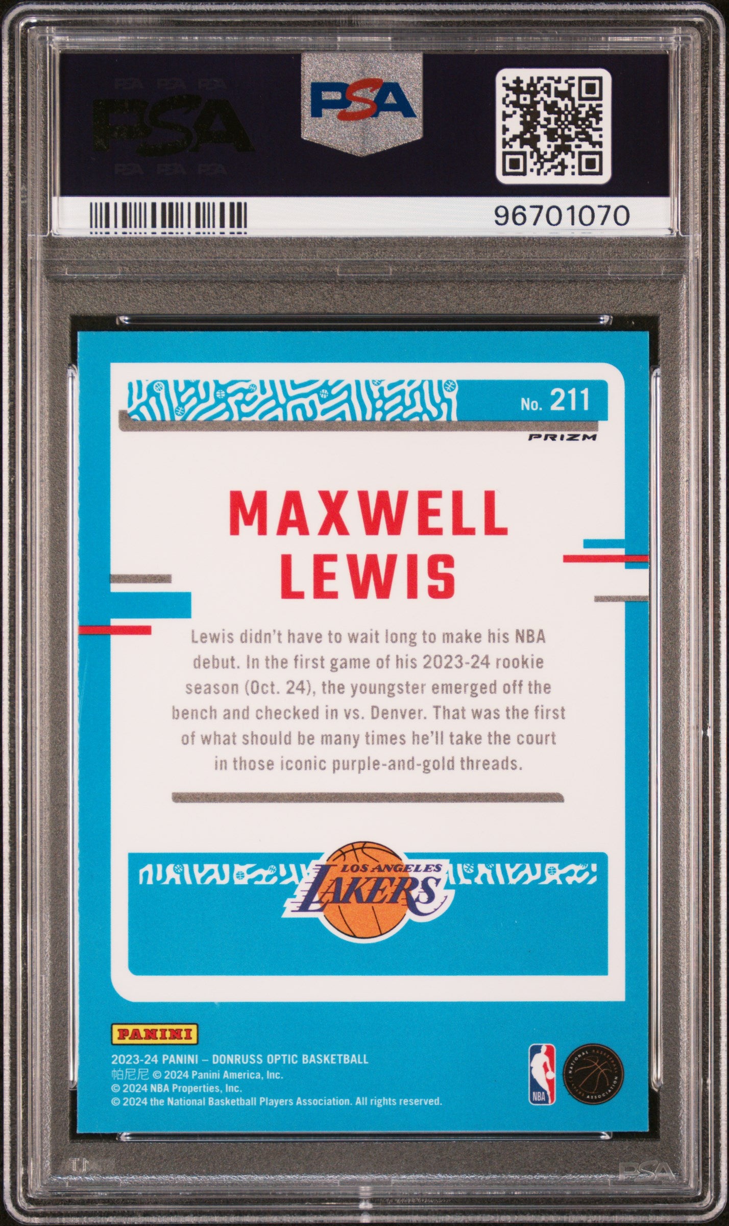 2023 Panini Donruss Optic Maxwell Lewis #211 PSA 10