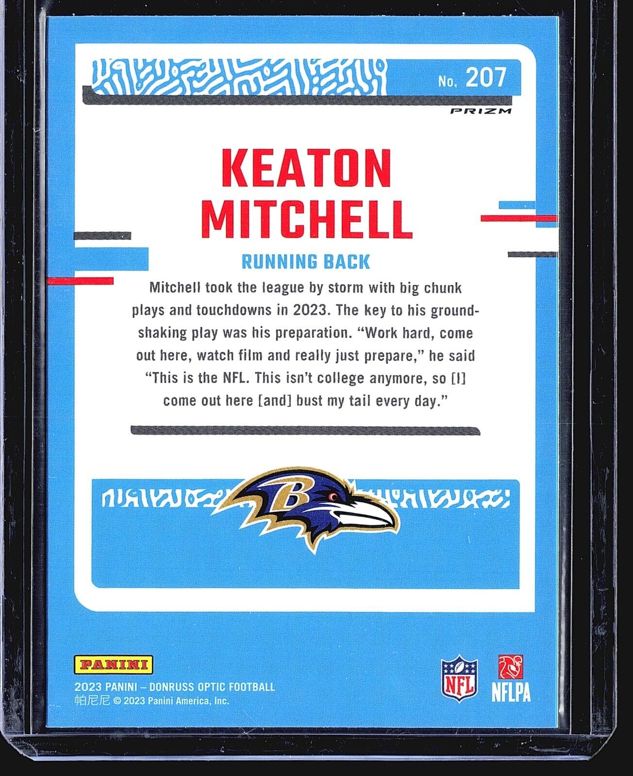 You are purchasing a 2023 Panini Donruss Optic Keaton Mitchell #207 . You will receive the exact card in the... Read more