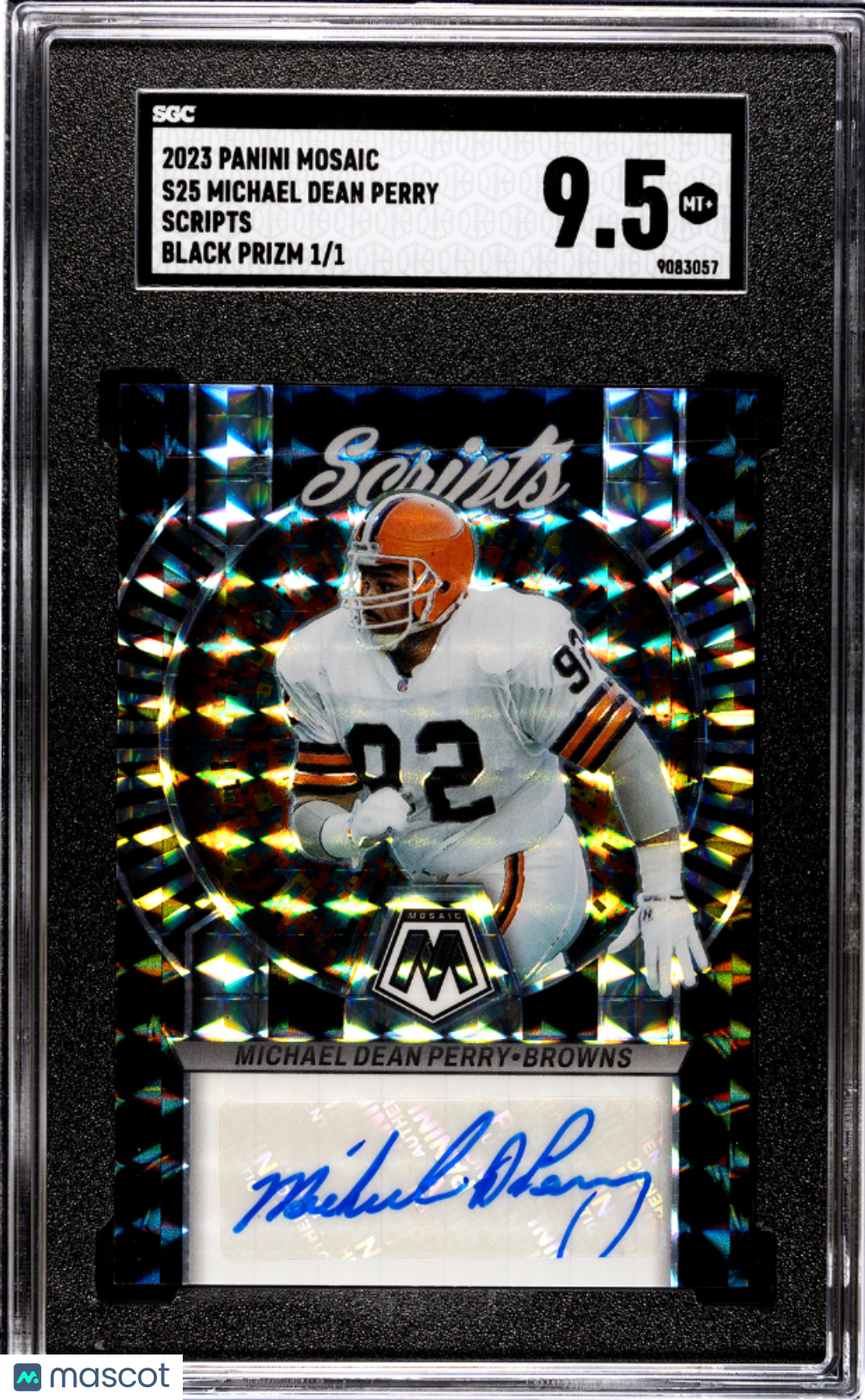 You are purchasing a 2023 Panini Mosaic Michael Dean Perry #S25 Scripts Black Prizm 1 1 SGC 9.5. You will... Read more