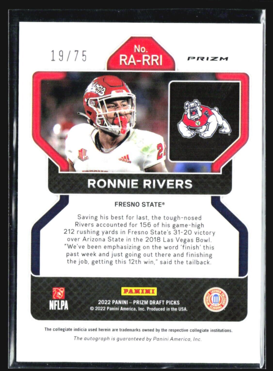 2023 Panini Prizm Draft Auto Update #RA-RRI Ronnie Rivers Blue Ice /75