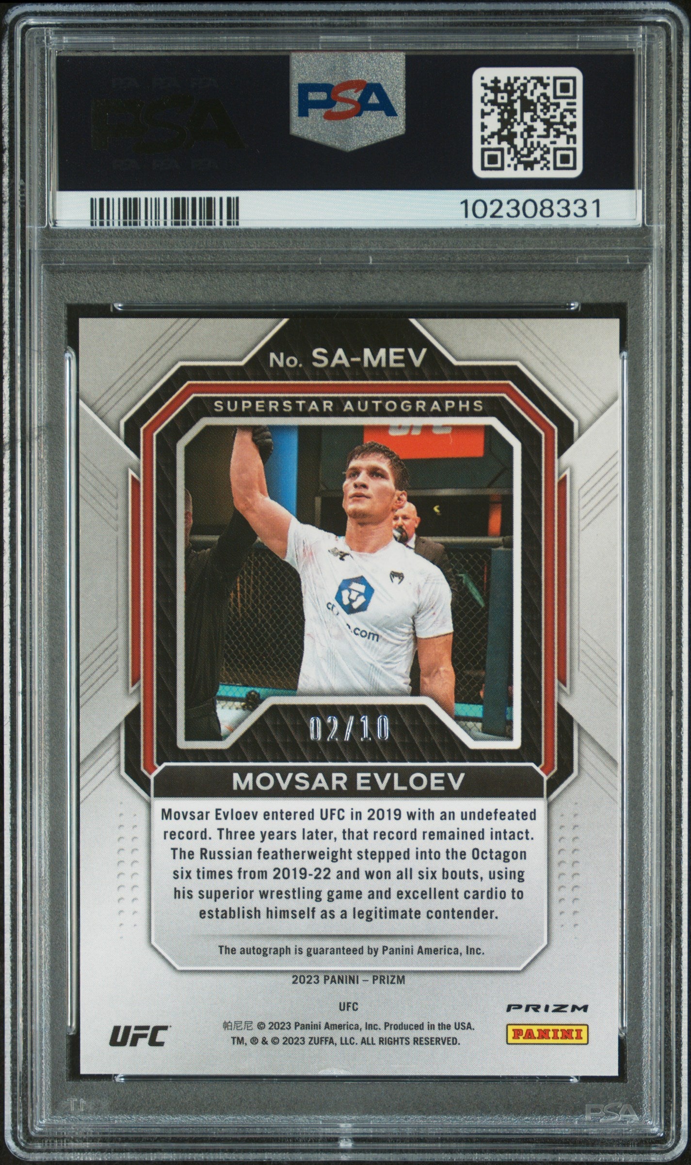 2023 Panini Prizm UFC Superstar Autographs Movsar Evloev #SAMEV Gold PSA 10