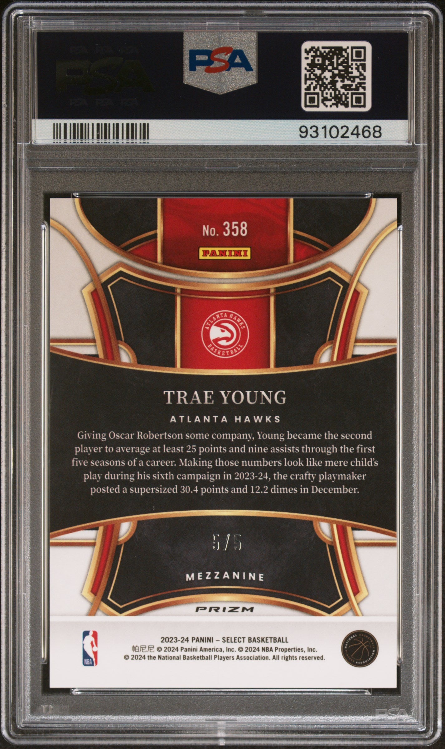 2023 Panini Select Trae Young #358 Green Prizm PSA 10