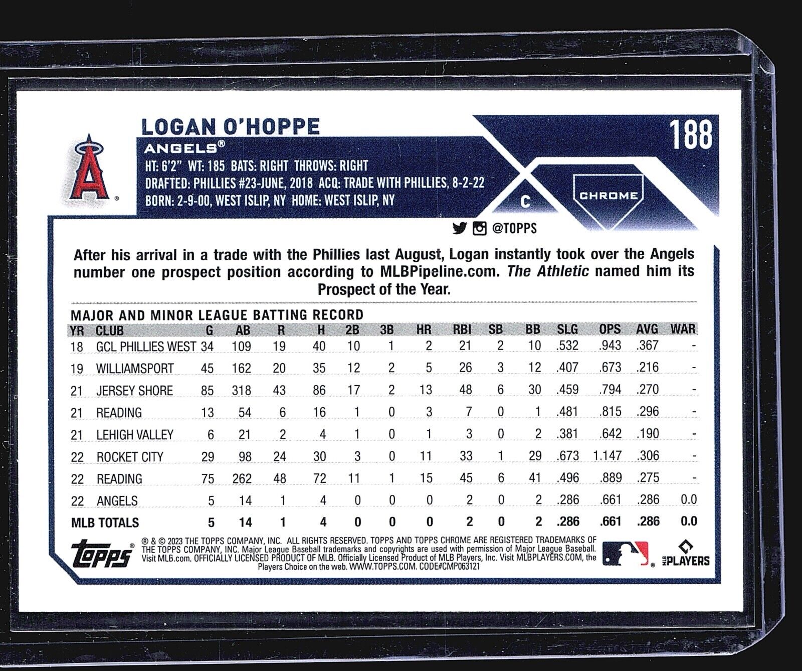 2023 Topps Chrome - #188 Logan O'Hoppe (RC) Pink Refractor