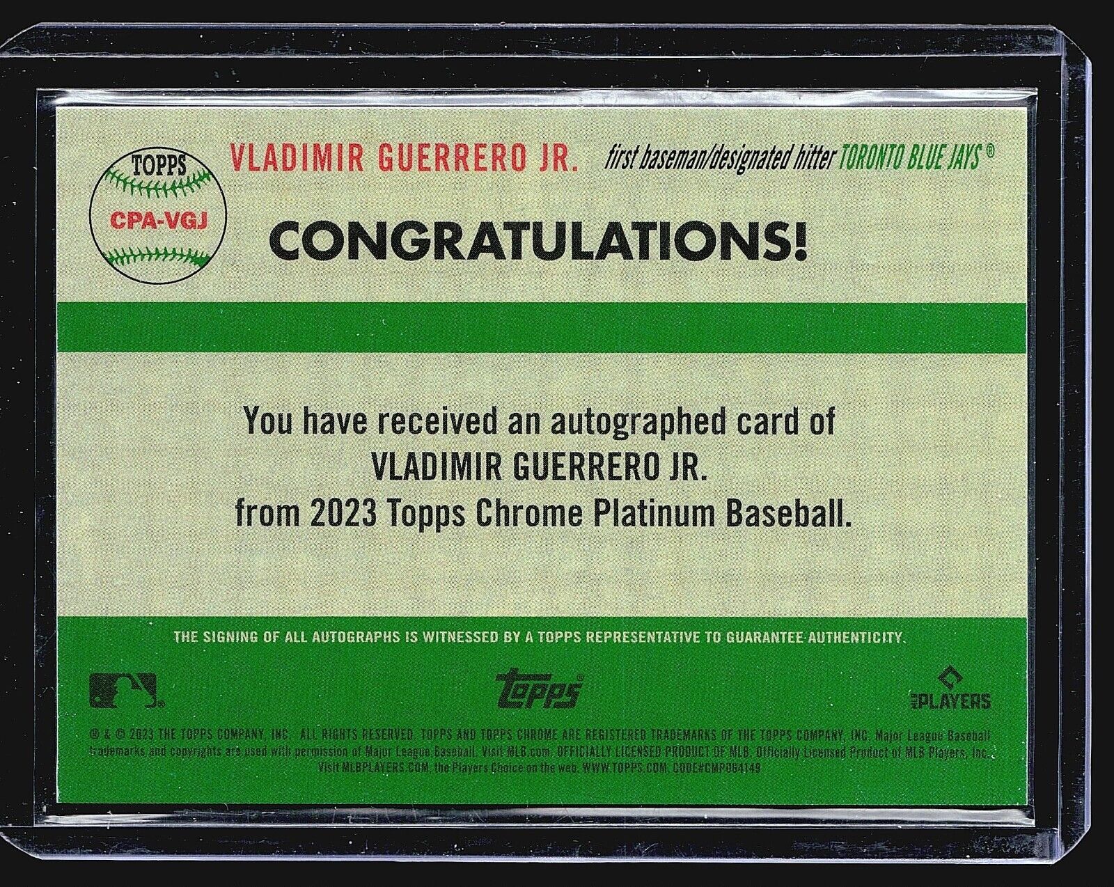 2023 Topps Chrome Platinum Ann Auto Black Refractor Vladimir Guerrero Jr /10