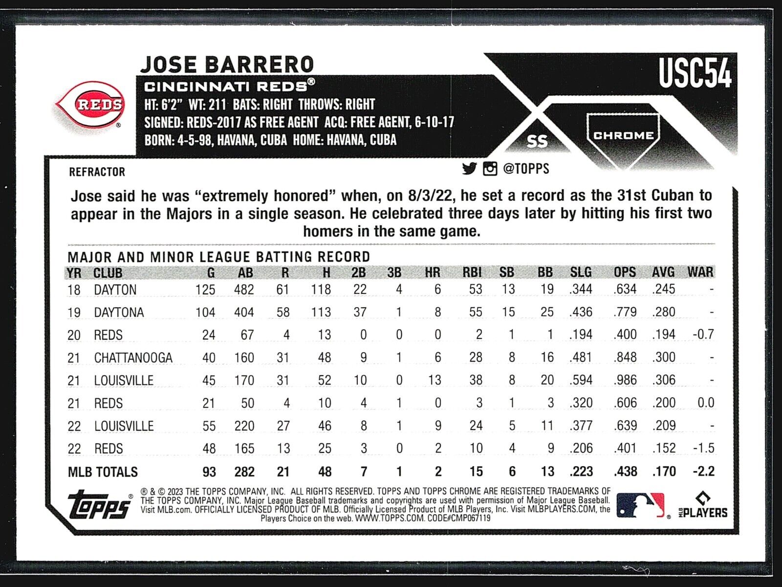 Reviews 2023 Topps Chrome Update Refractor Jose Barrero #USC 54 0 out of 5 stars This product has no reviews yet Write a review Write a review