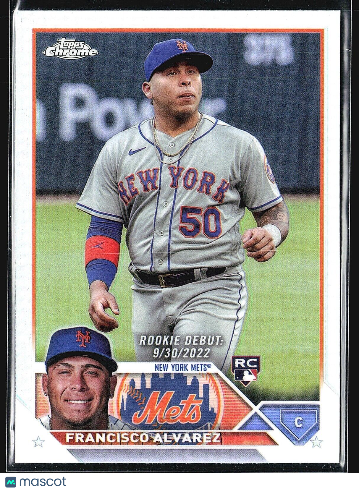 2023 Topps Chrome Update Series - Rookie Debut #USC103 Francisco Alvarez (RC) Listed With Mascot. Read more
