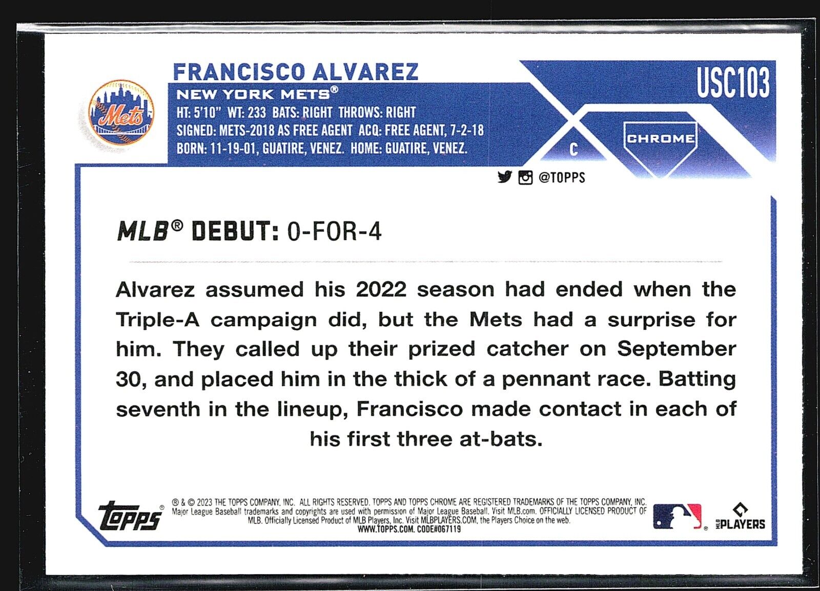 2023 Topps Chrome Update Series Refractor Debut #USC103 Francisco Alvarez (RC)