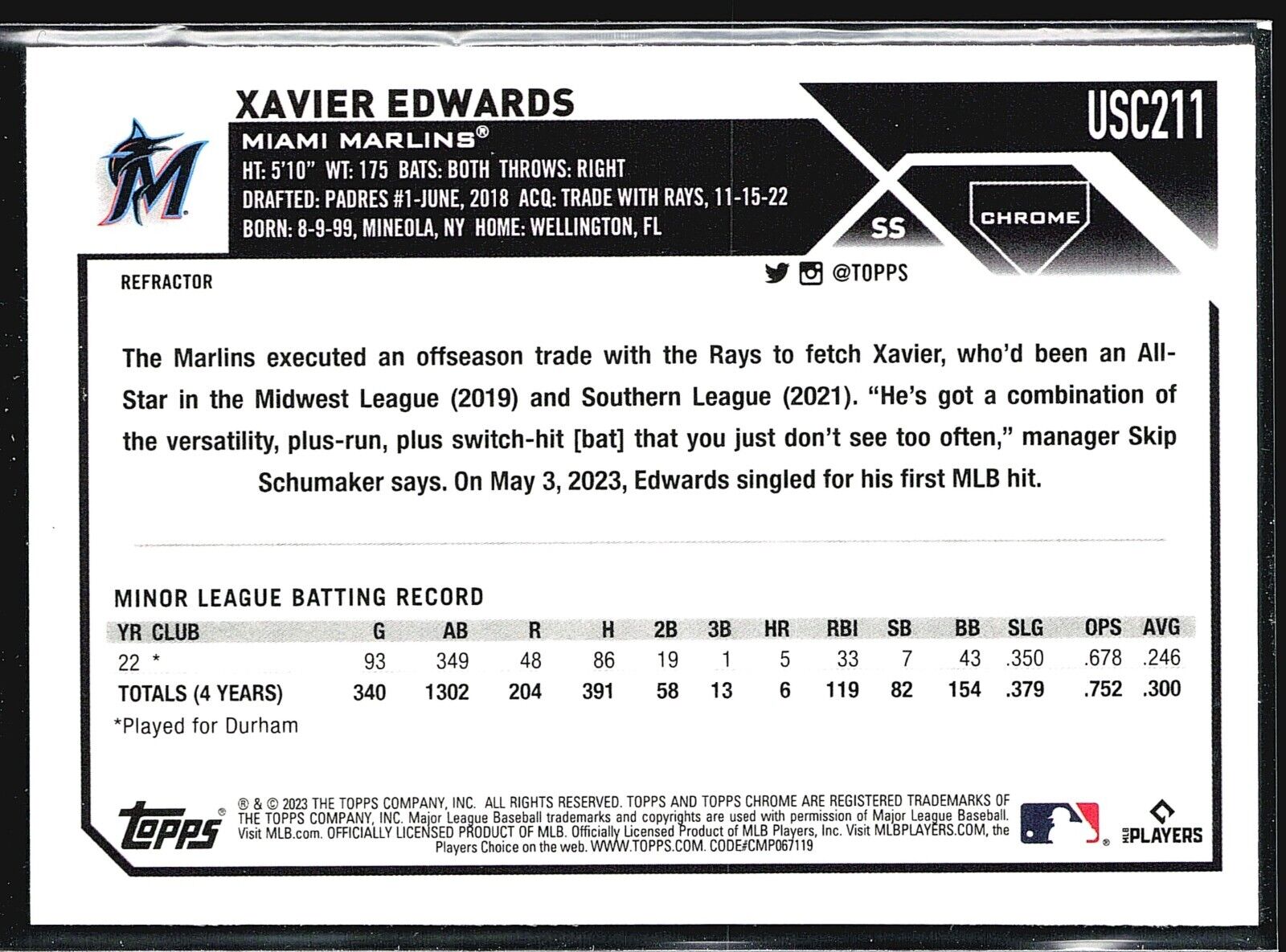Reviews 2023 Topps CHrome Update Series - #US296 Xavier Edwards (RC) Refractor 0 out of 5 stars This product has no reviews yet Write a review Write a review