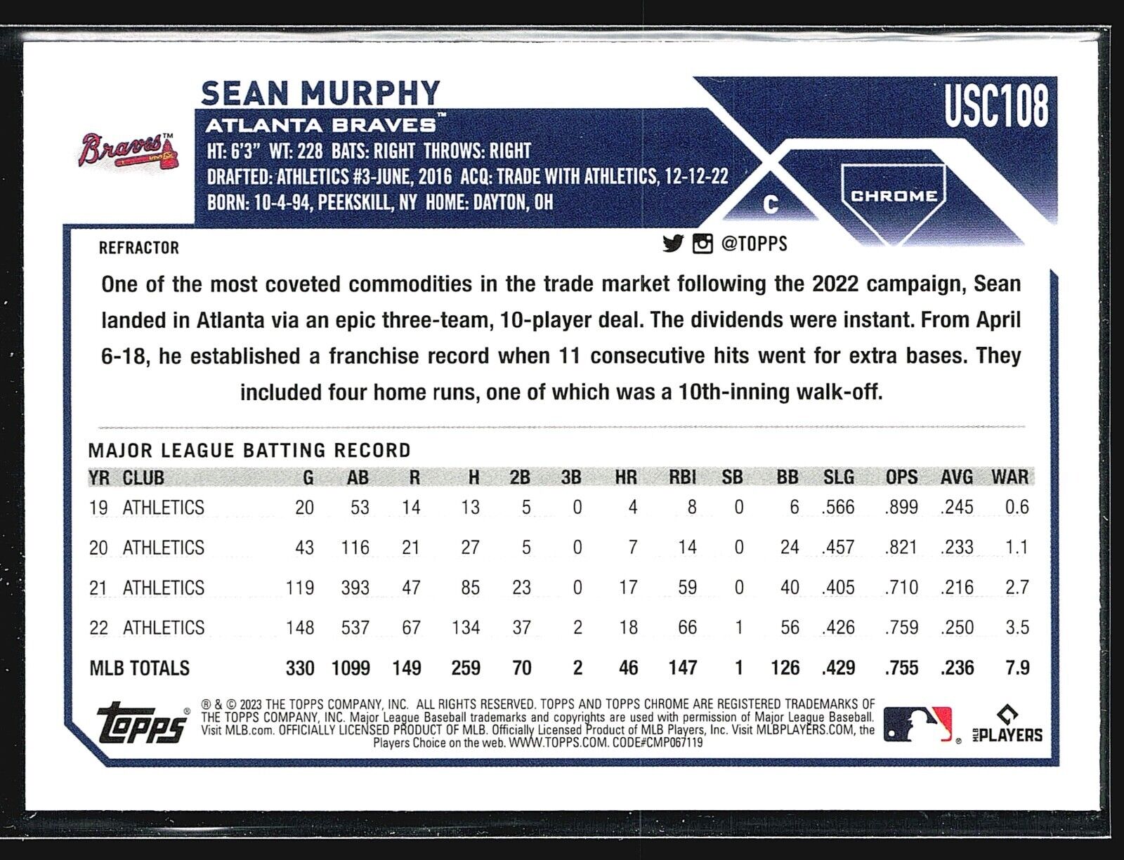 Reviews 2023 Topps CHrome Update Series - #US33 Sean Murphy Refractor 0 out of 5 stars This product has no reviews yet Write a review Write a review