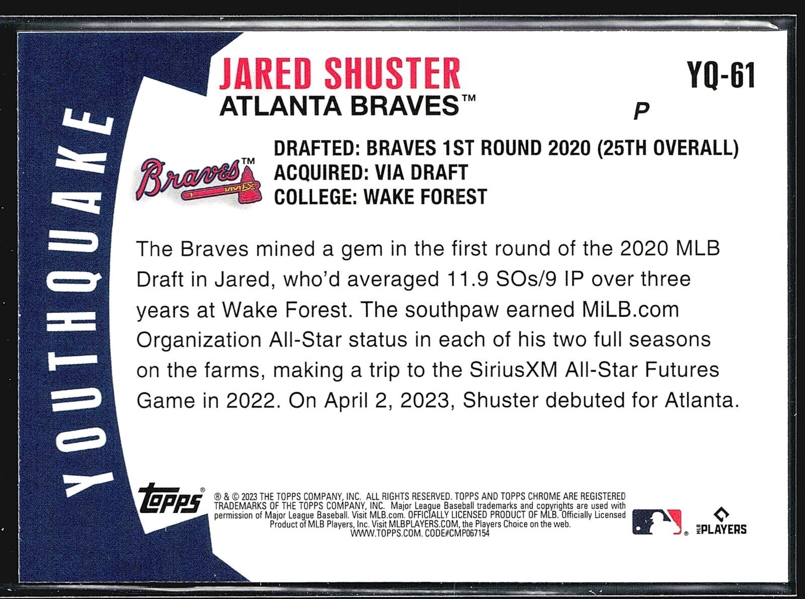 2023 Topps Chrome Update Series - Youthquake #YQ-61 Jared Shuster (RC)