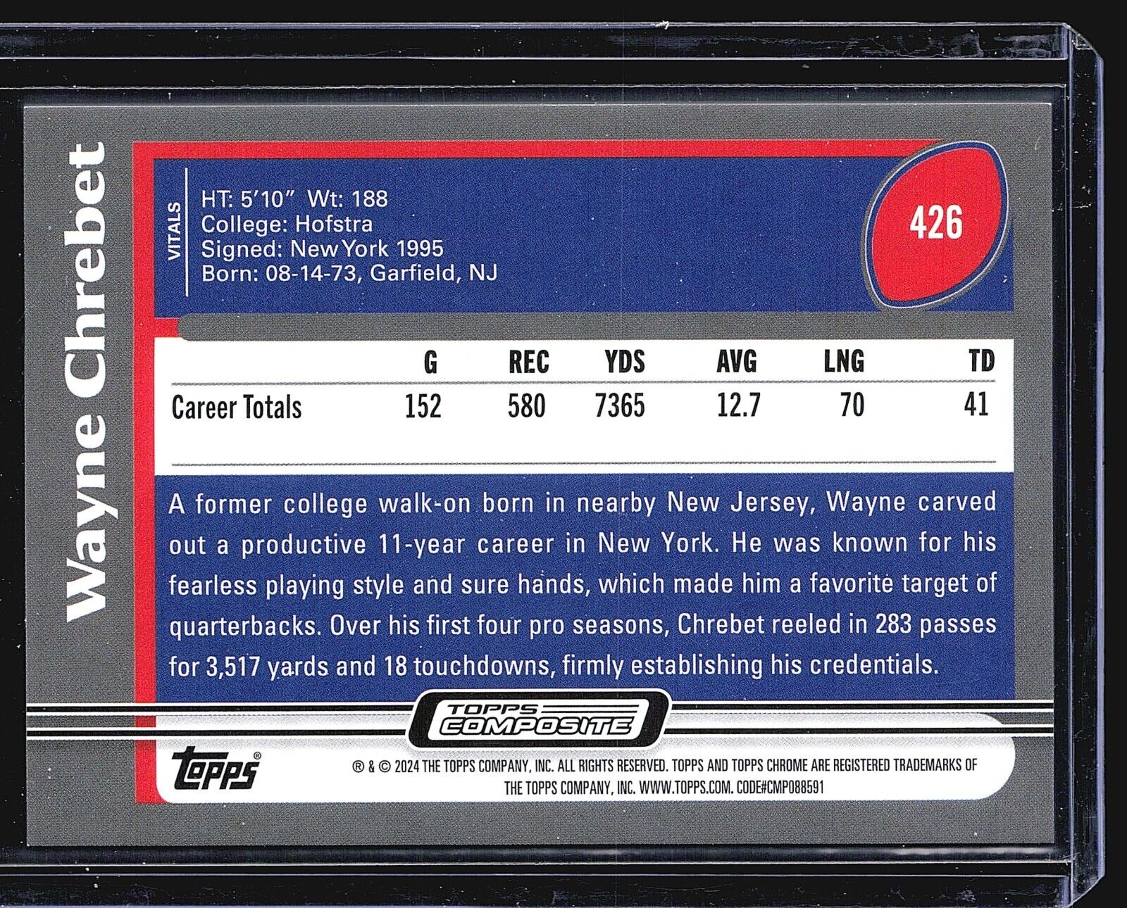 You are purchasing a 2023 Topps Composite Wayne Chrebet #426 . You will receive the exact card in the photographs.... Read more