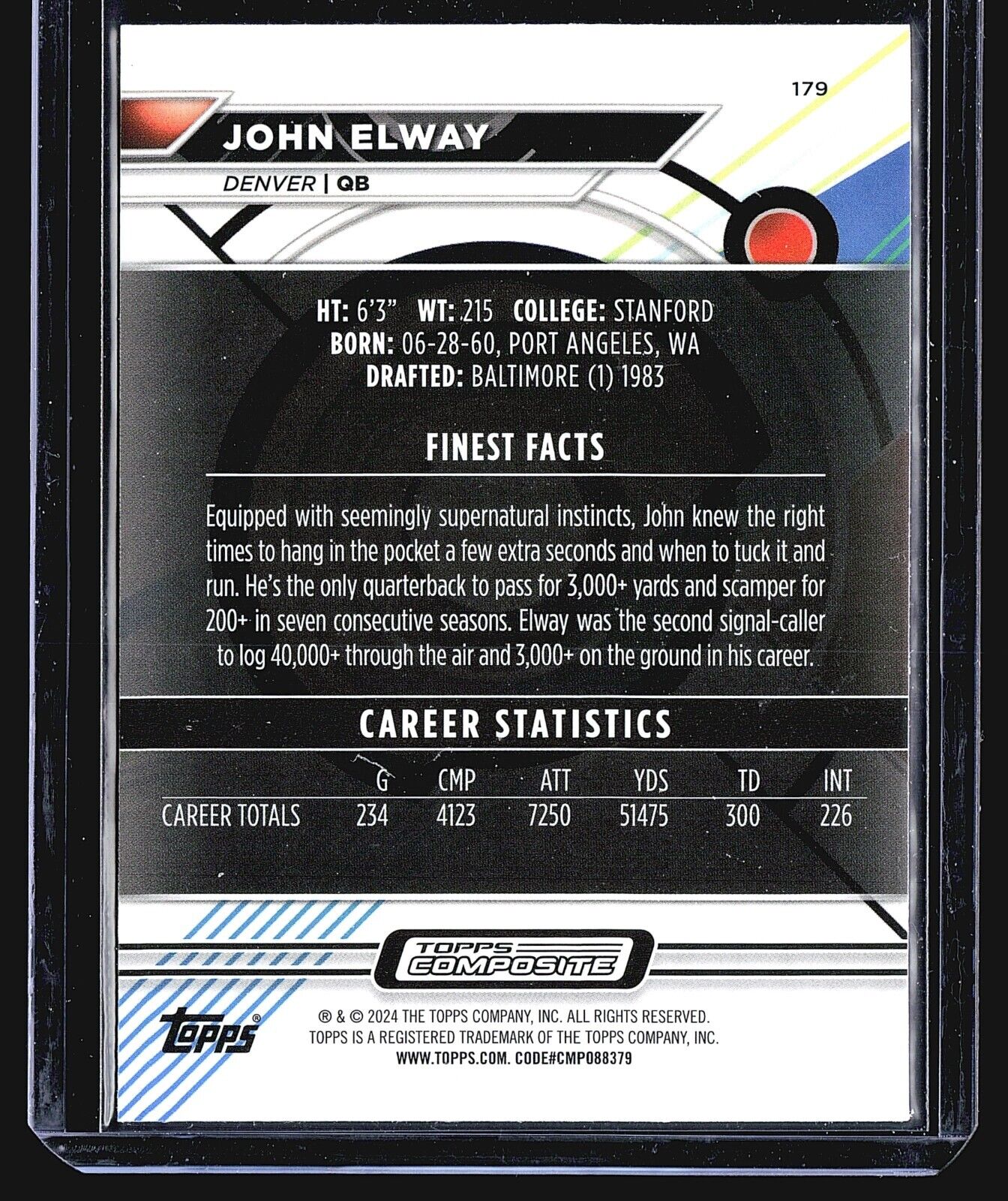 You are purchasing a 2023 Topps Composite John Elway #179 . You will receive the exact card in the photographs.... Read more