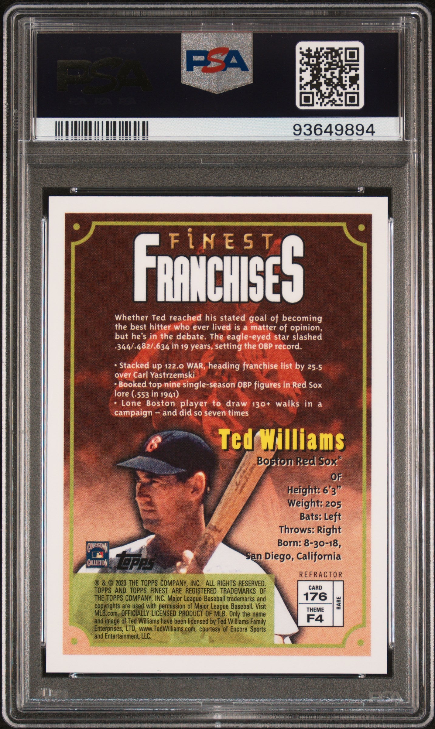 2023 Topps Finest Flashbacks Ted Williams #176 Refractor PSA 10