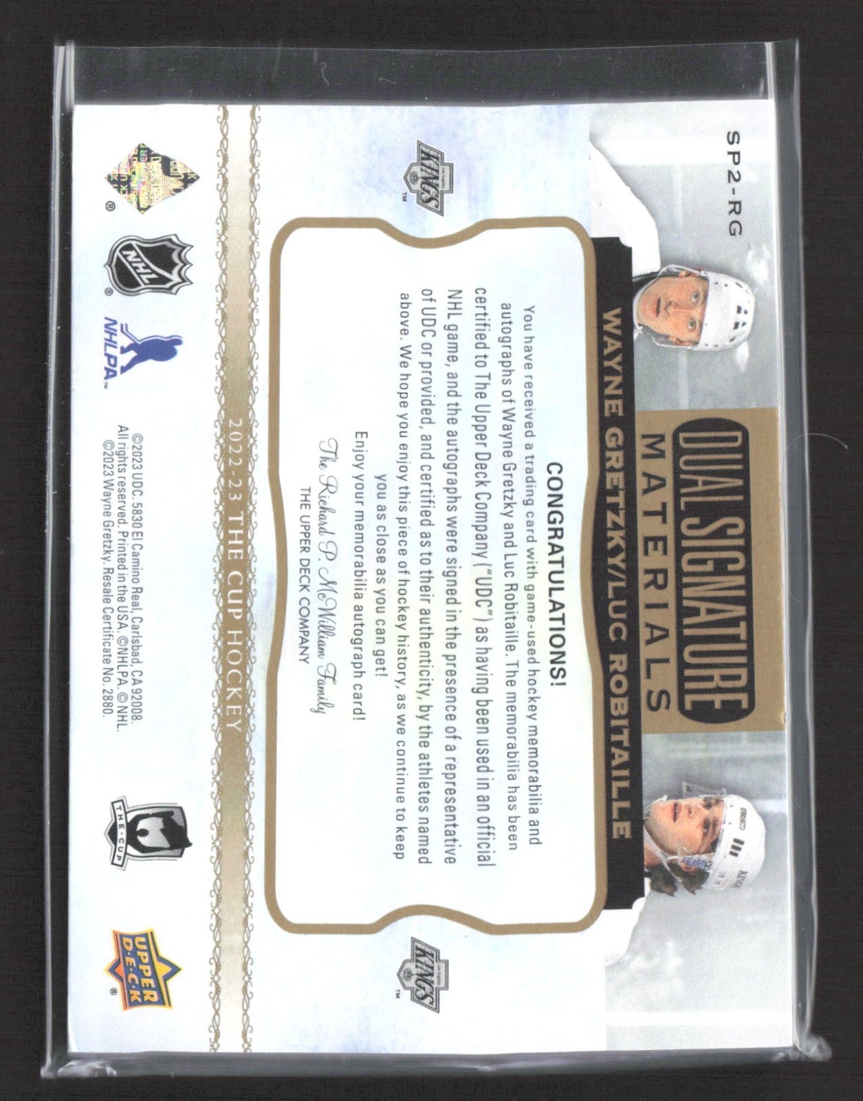 2023 UD The Cup Dual Signature Wayne Gretzky Luc Robitaille Patch Auto /5