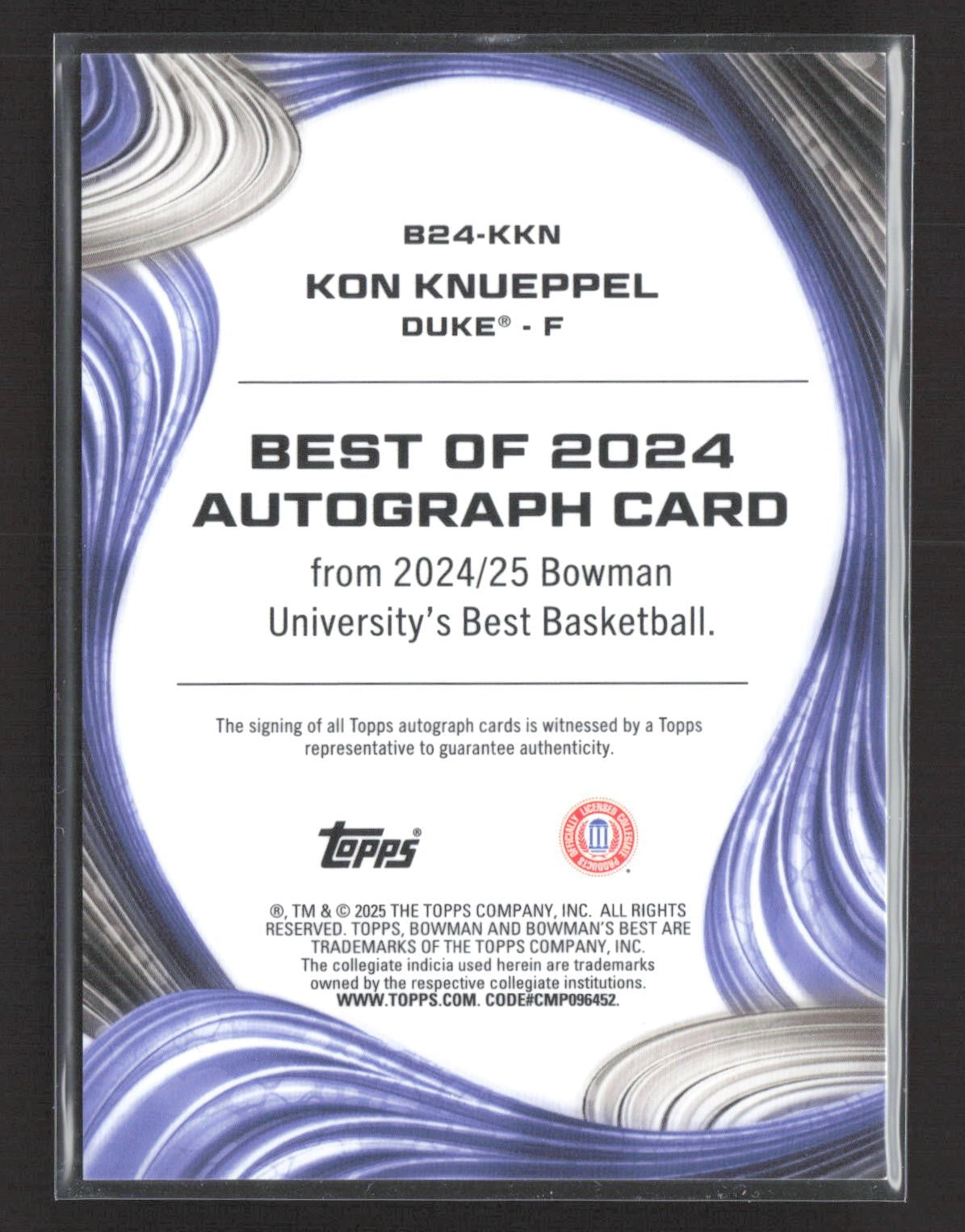 2024-25 Bowman University Best Kon Knueppel Orange Geometric Auto /25