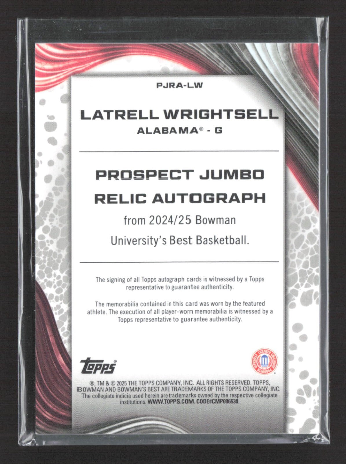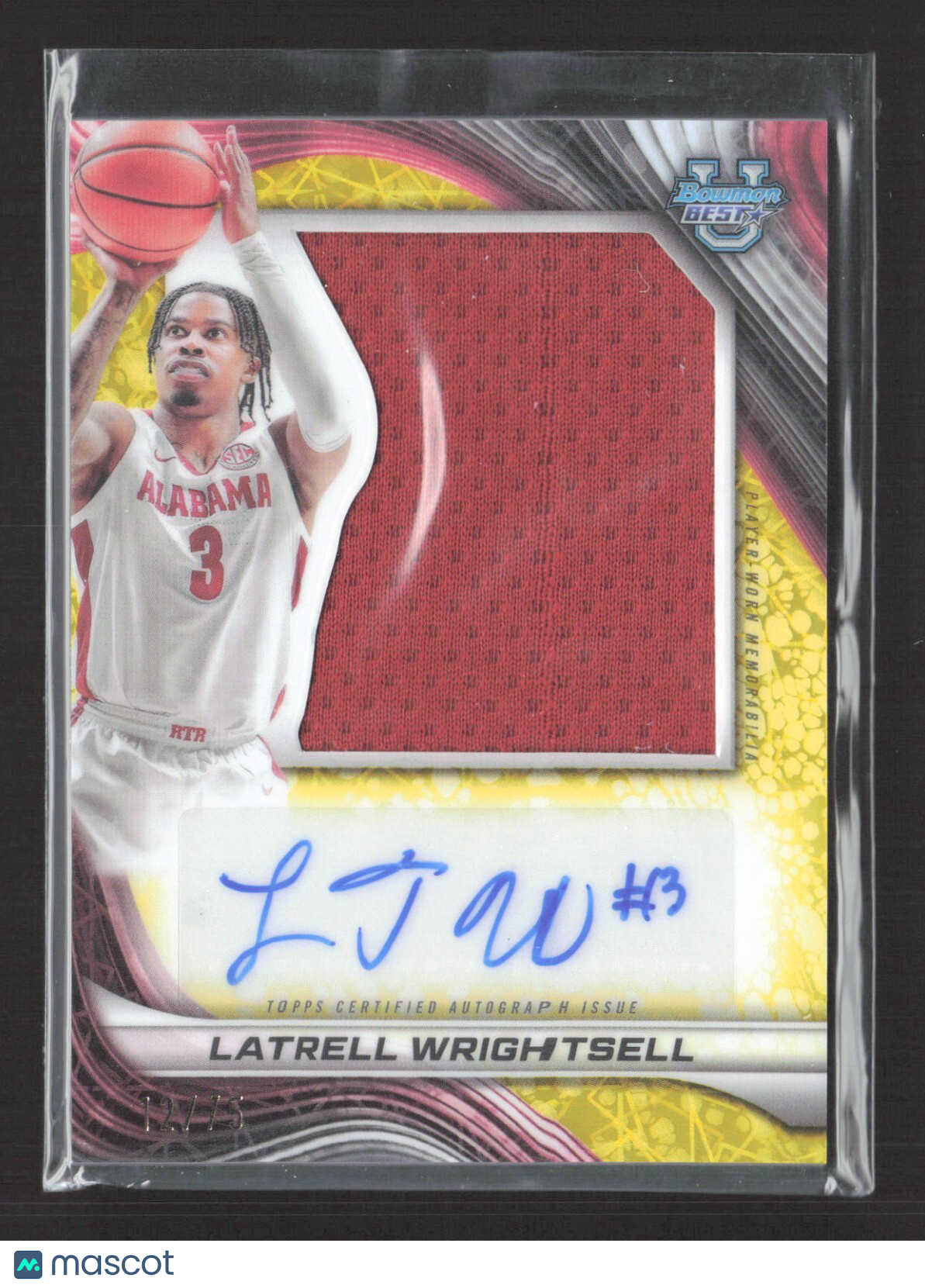 2024-25 Bowman University Best Latrell Wrightsell Yellow Relic Auto /75 #PJRA-LW