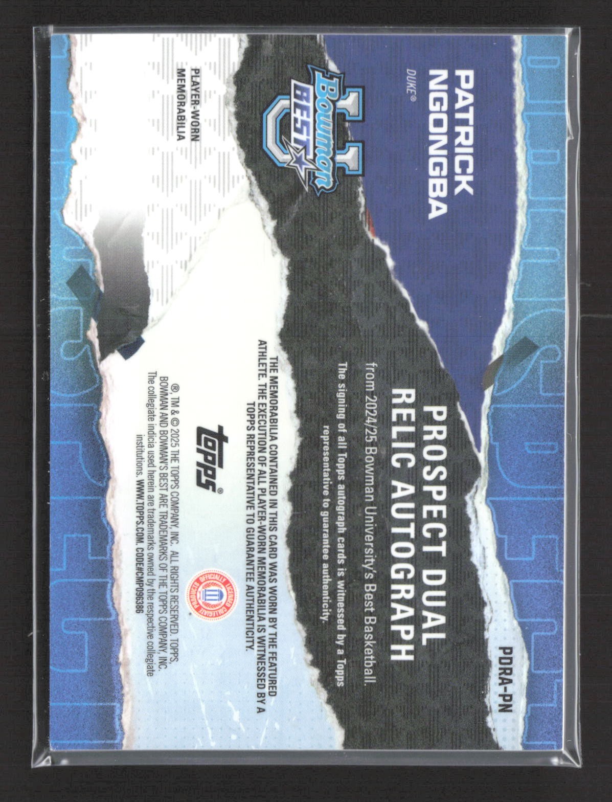 2024-25 Bowman University Best Patrick Ngongba Red Patch Auto /5 #PDRA-PN
