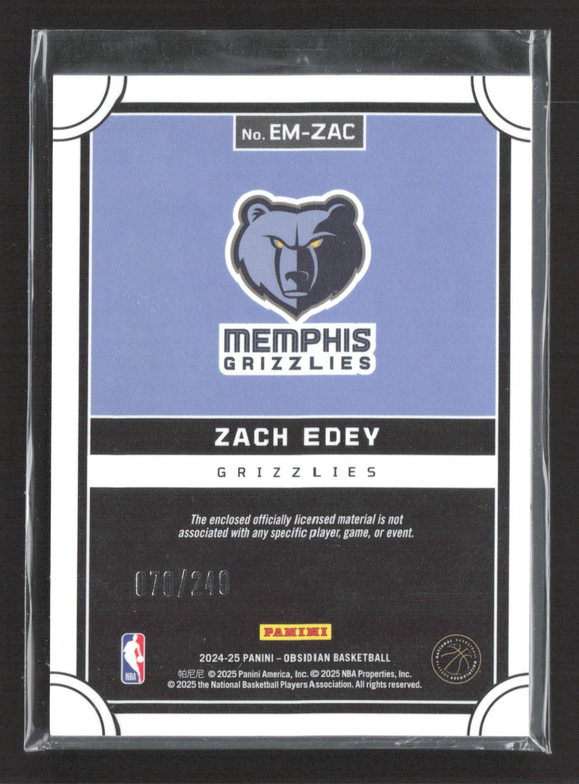 2024-25 Panini Obsidian Eclipse Zach Edey Rc Jersey /249 #EM-ZAC