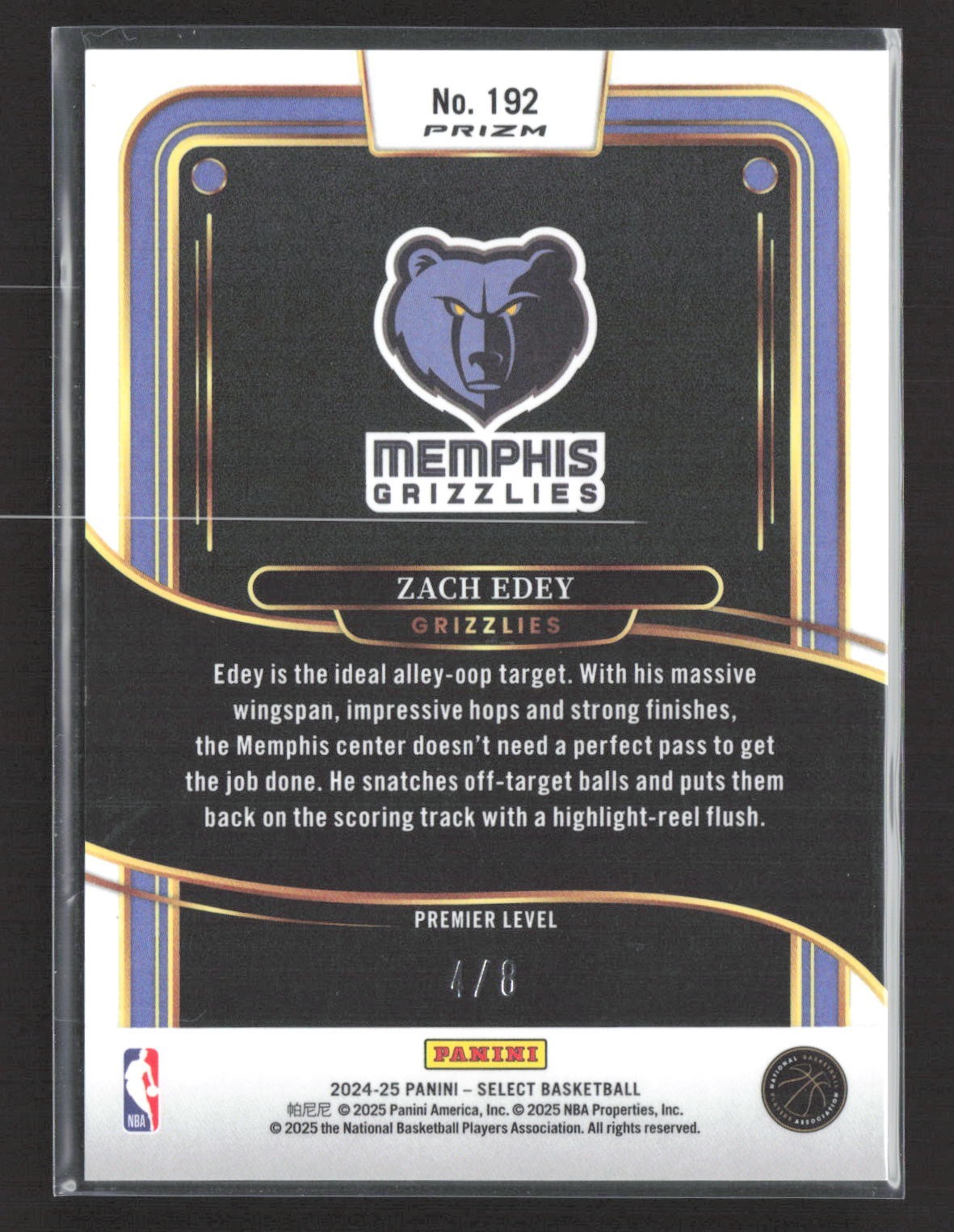 2024-25 Panini Select - Premier Level Zach Edey #192 Dragon scale /8