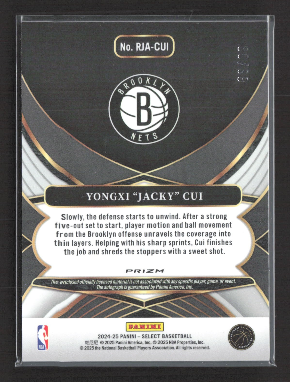 2024-25 Panini Select Yongxi Jacky Cui Rc Patch Auto Purple /99 #RJA-CUI