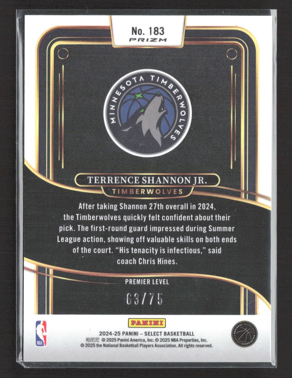 2024-25 Select Premier Level Terrence Shannon Jr. #183 Blue Wave Prizm /75 (RC)