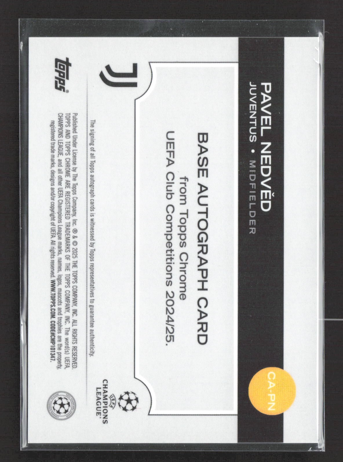 2024-25 Topps Chrome Pavel Nedved Orange Refractor Auto /25 #CA-PN