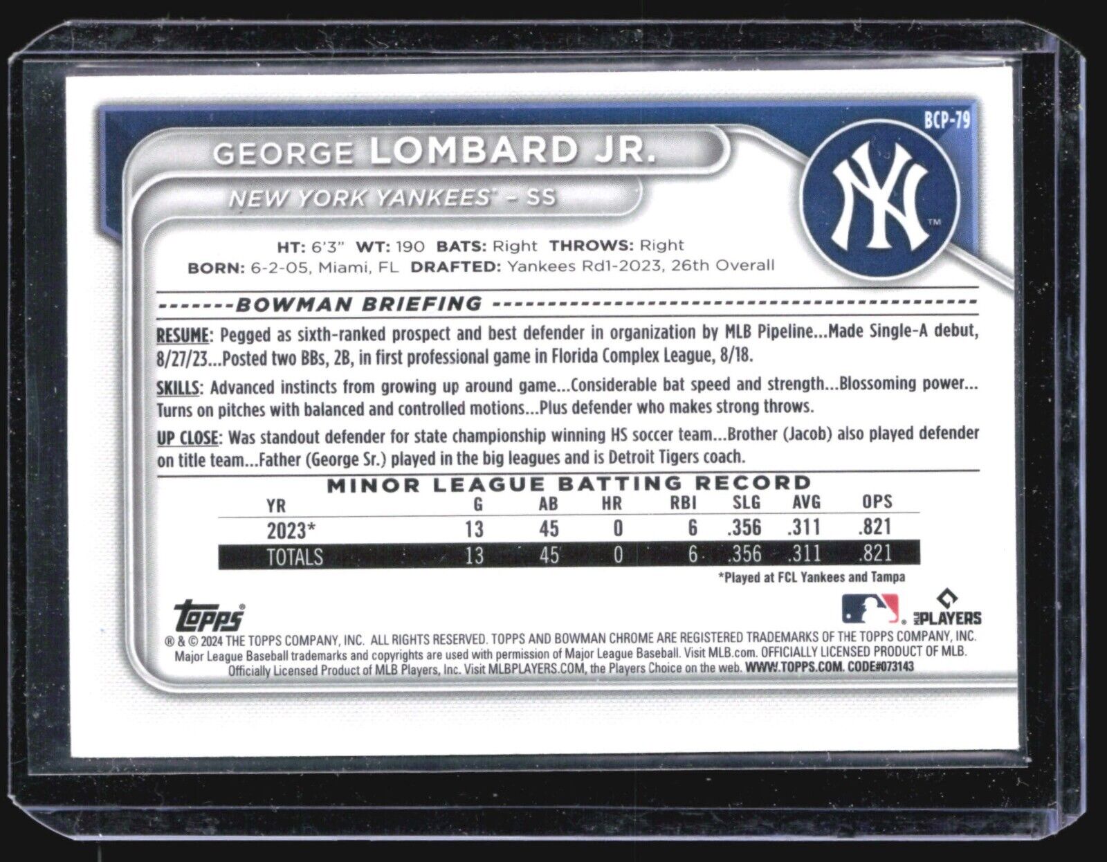 2024 Bowman 1st Chrome George Lombard Jr. #BCP-79