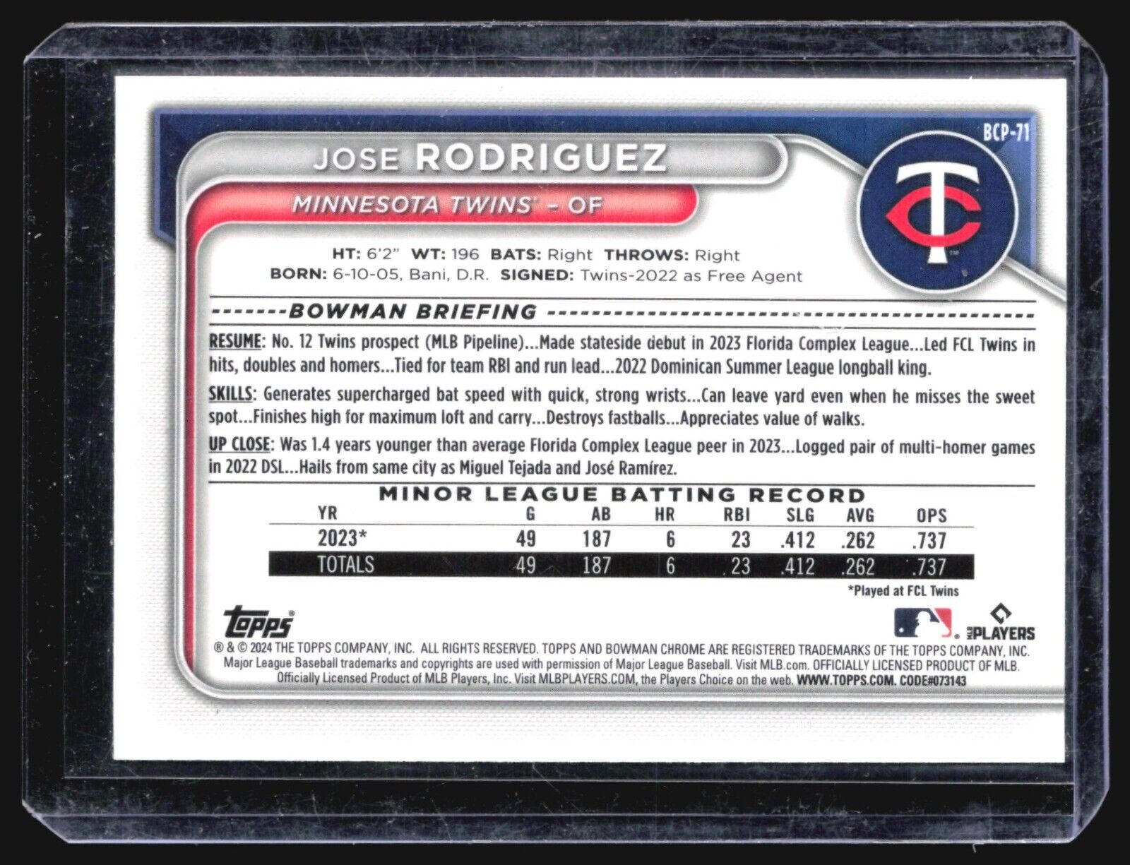 You are purchasing a Jose Rodriguez #BCP-71. You will receive the exact card in the photographs. Thank you for looking.... Read more