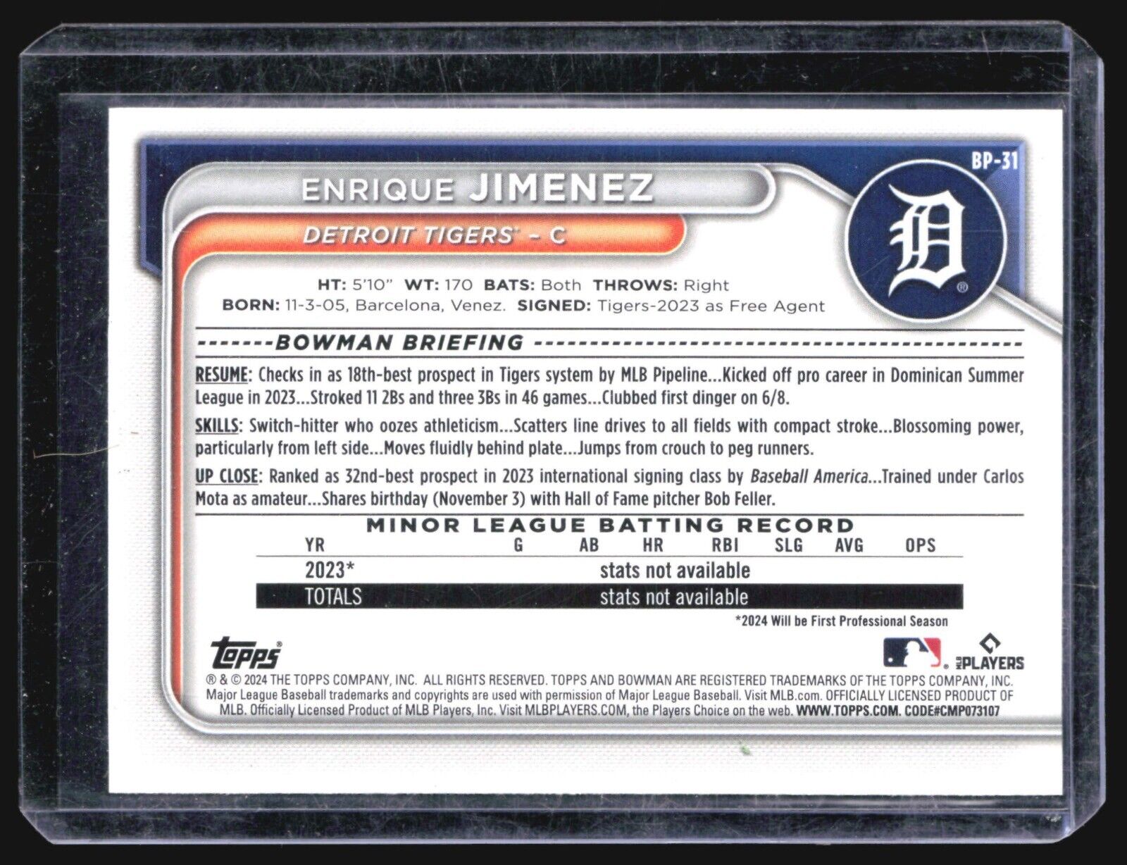 You are purchasing a 2024 Bowman Enrique Jimenez #BP-31. You will receive the exact card in the photographs. Thank you... Read more