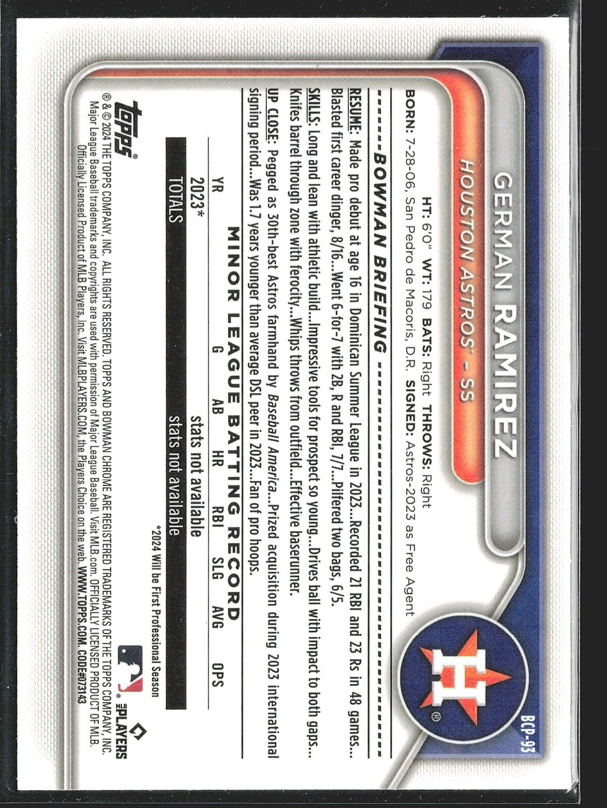2024 Bowman 1st Speckle German Ramirez #BCP-93 Astros