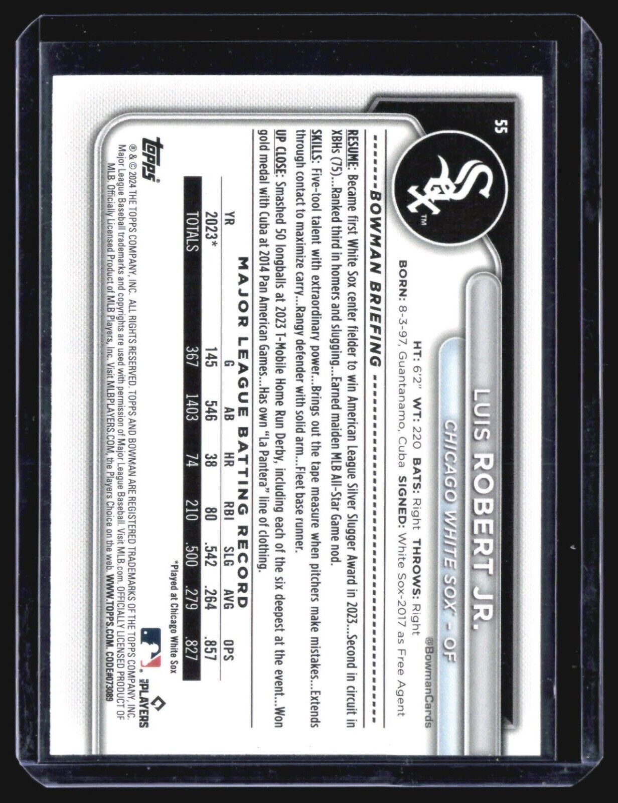 You are purchasing a 2024 Bowman Luis Robert #55 Base Set. You will receive the exact card in the photographs.... Read more
