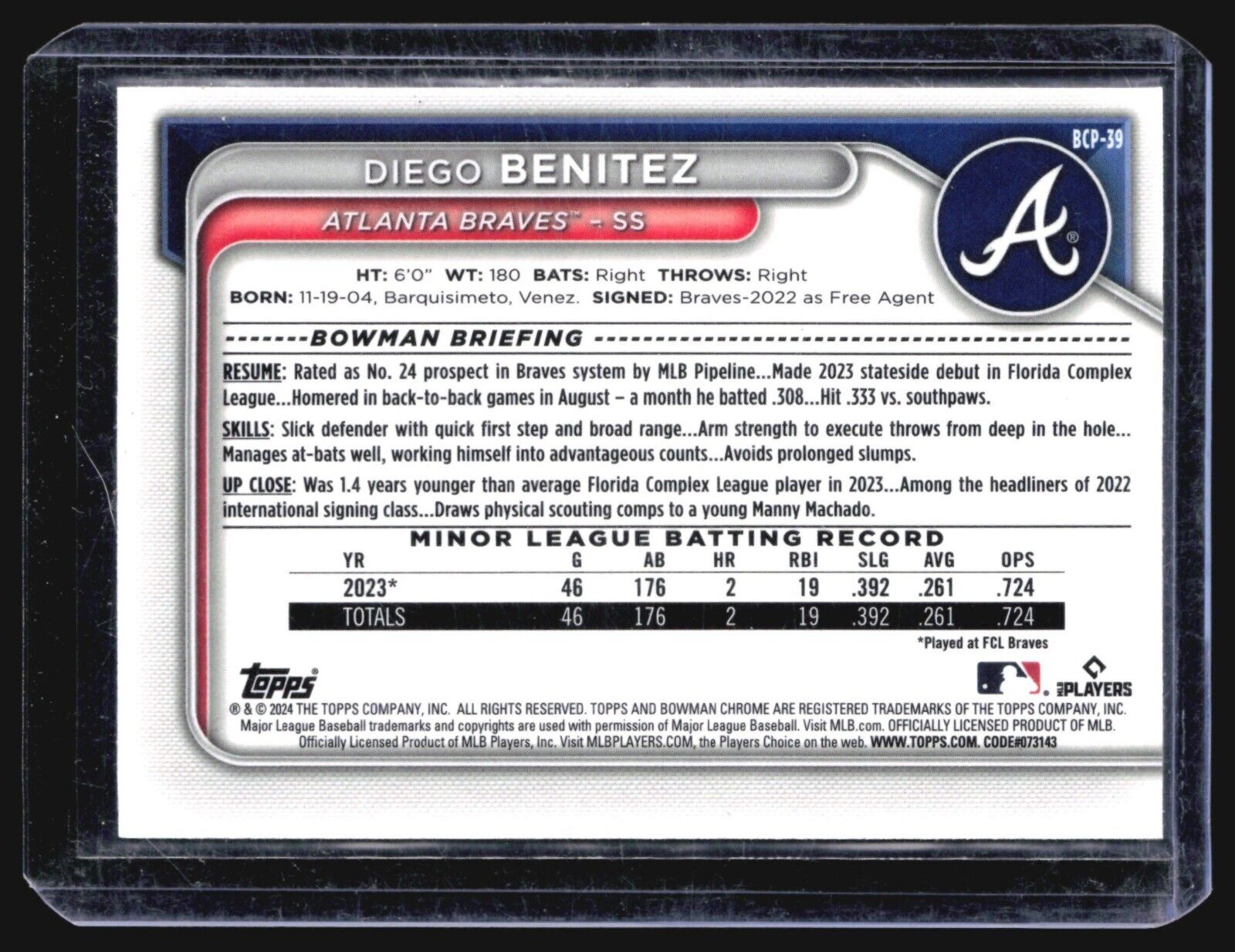 2024 Bowman Chrome 1st Diego Benitez #BCP-39