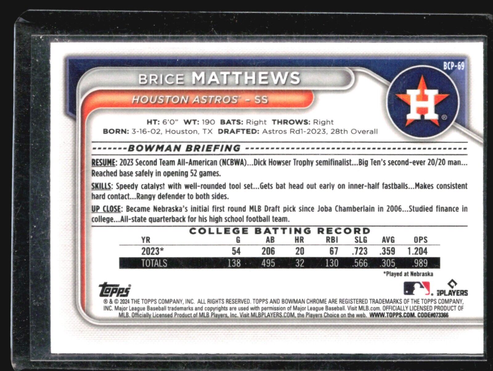 You are purchasing a 2024 Bowman Brice Matthews #BCP-69. You will receive the exact card in the photographs. Thank you... Read more