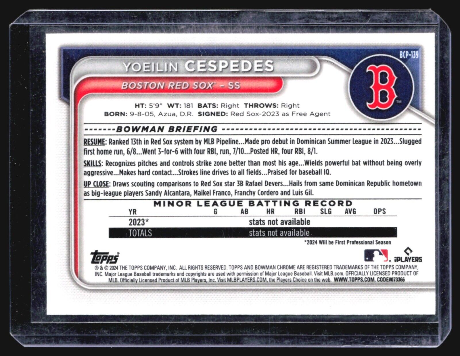 You are purchasing a 2024 Bowman Yoeilin Cespedes #BCP-139. You will receive the exact card in the photographs. Thank you... Read more