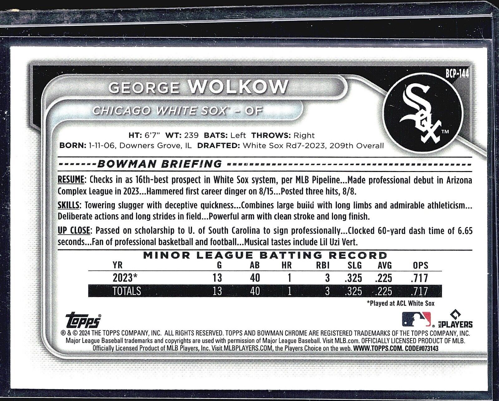 2024 Bowman - Chrome Prospects #BCP-144 George Wolkow (RC) Listed With Mascot. Read more
