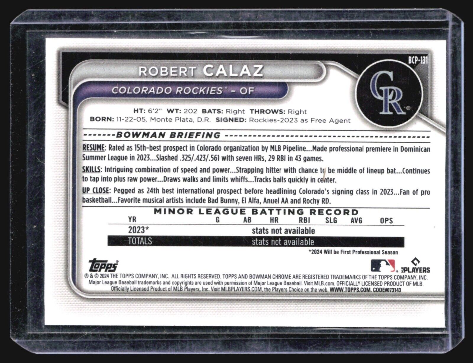 2024 Bowman Chrome 1st Robert Calaz #BCP-131