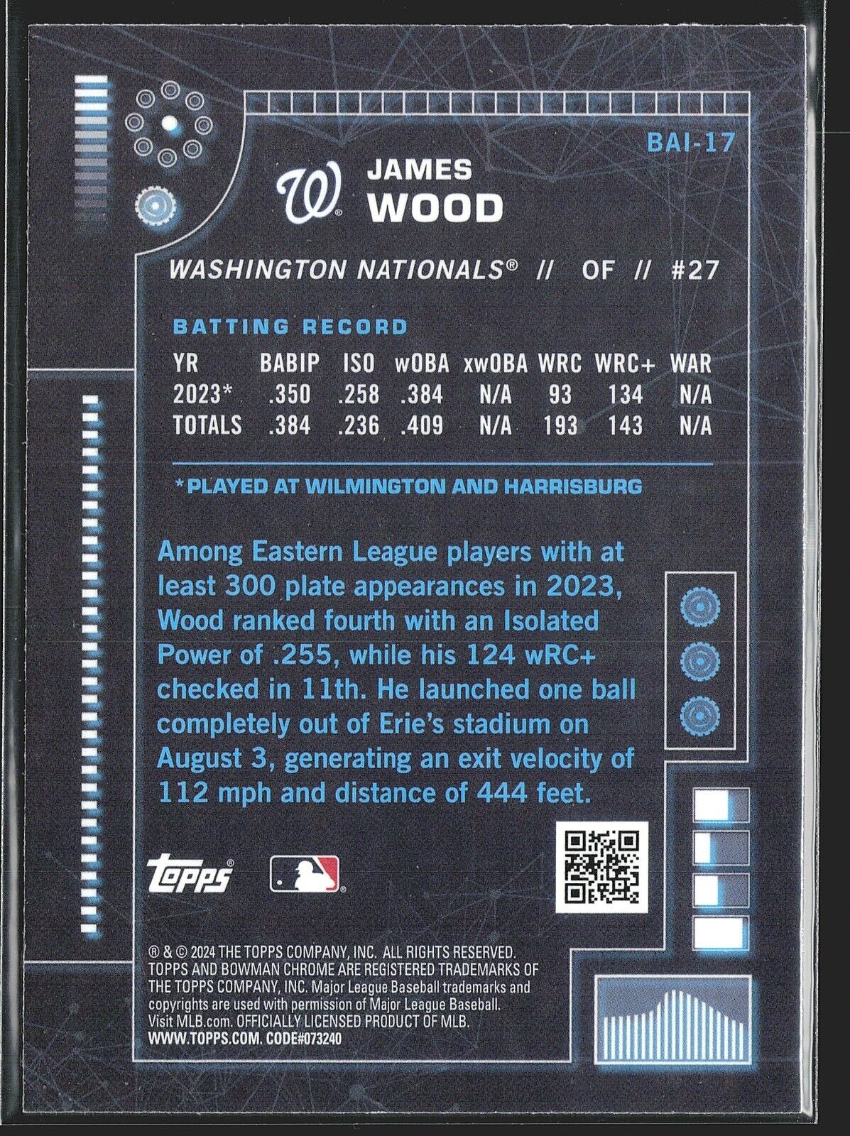 2024 Bowman Chrome A.I James Wood #BAI-17 Nationals