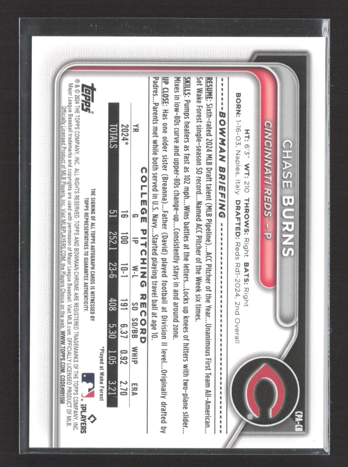 2024 Bowman Chrome Chase Burns 1st Auto #CPA-CB