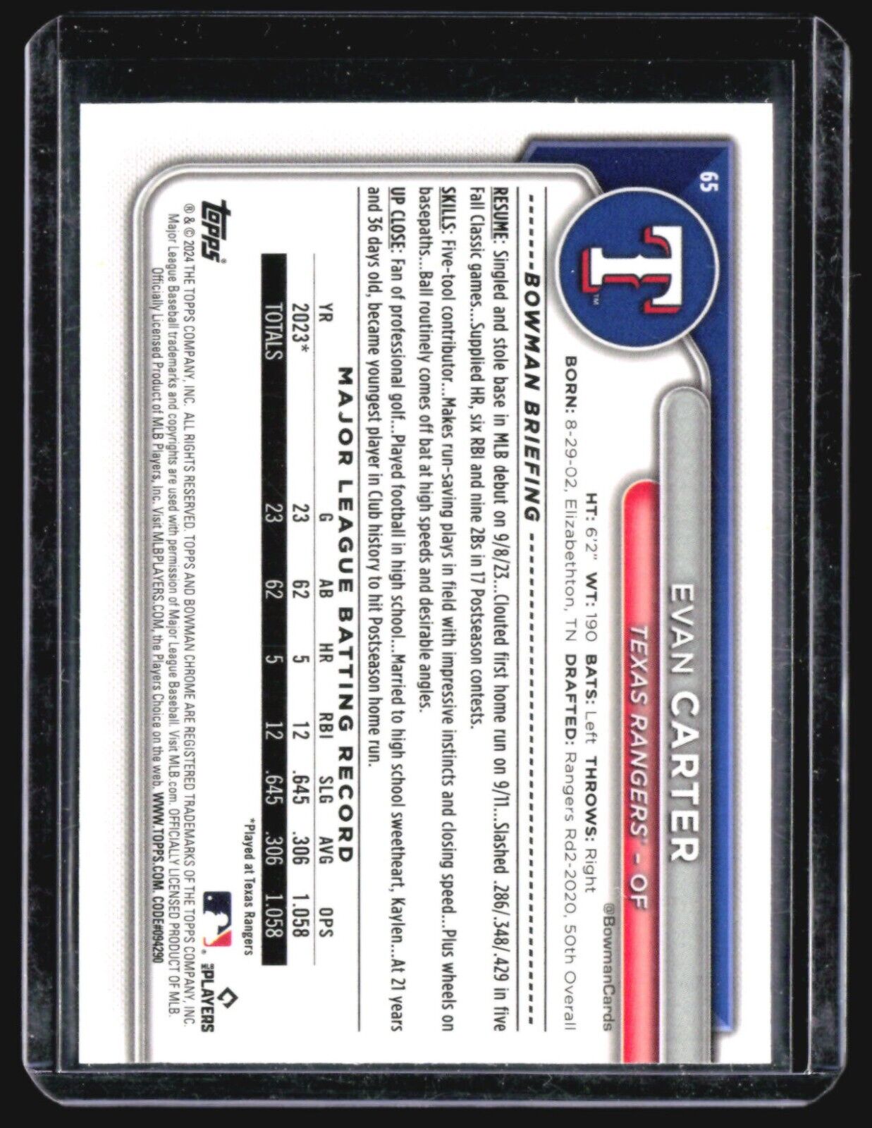 2024 Bowman Chrome evan Carter Mega Box Mojo Rc #65