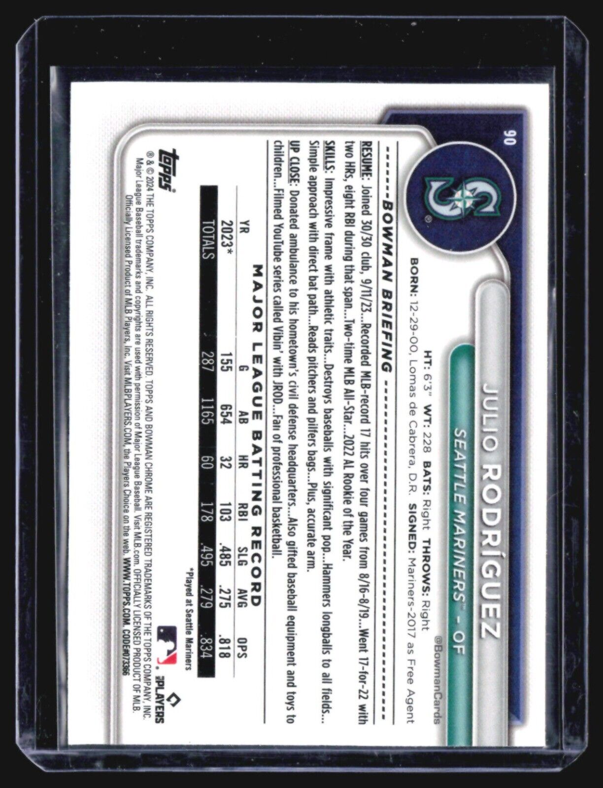 You are purchasing a 2024 Bowman Julio Rodriguez #90. You will receive the exact card in the photographs. Thank you... Read more