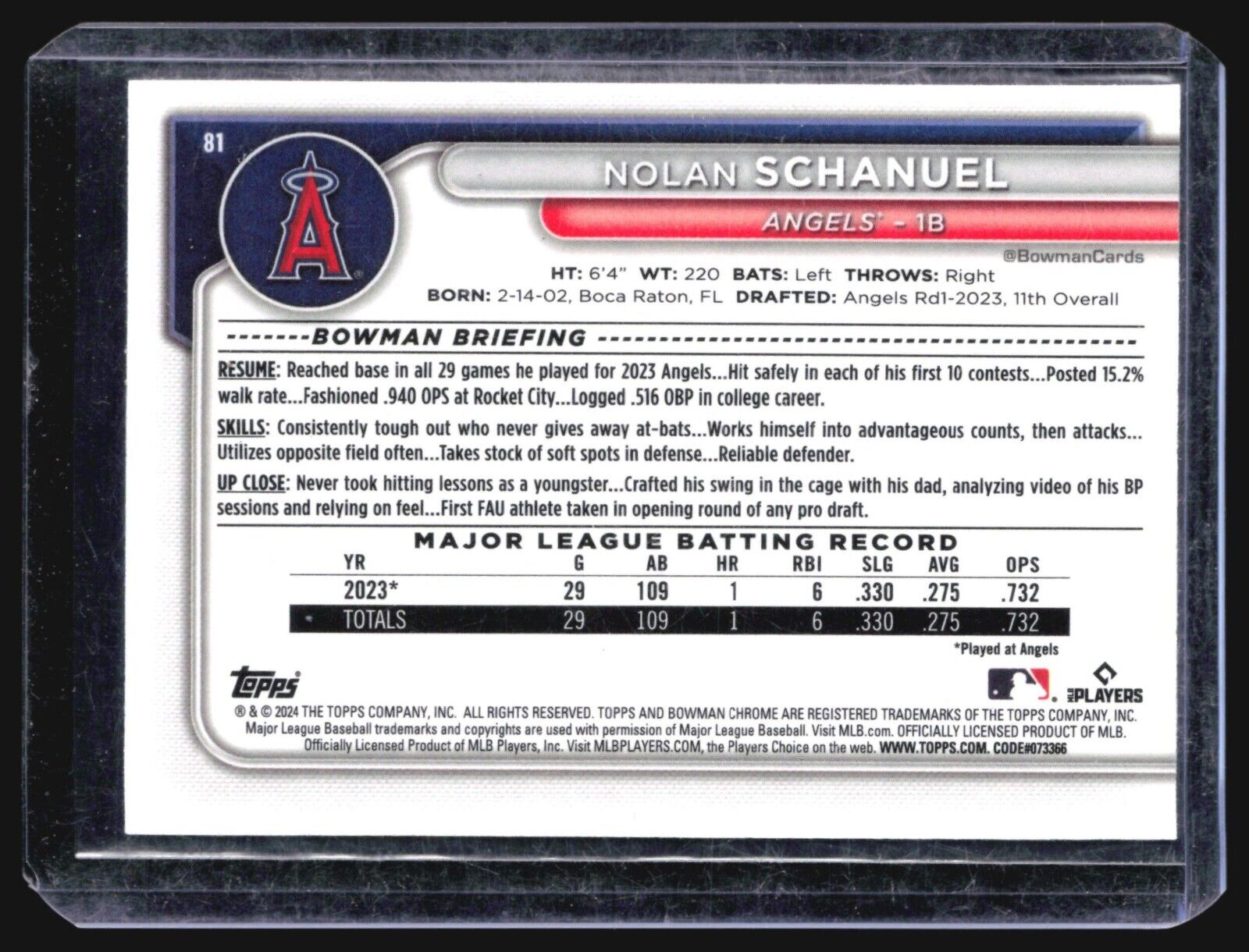 You are purchasing a 2024 Bowman Nolan Schanuel #81. You will receive the exact card in the photographs. Thank you... Read more