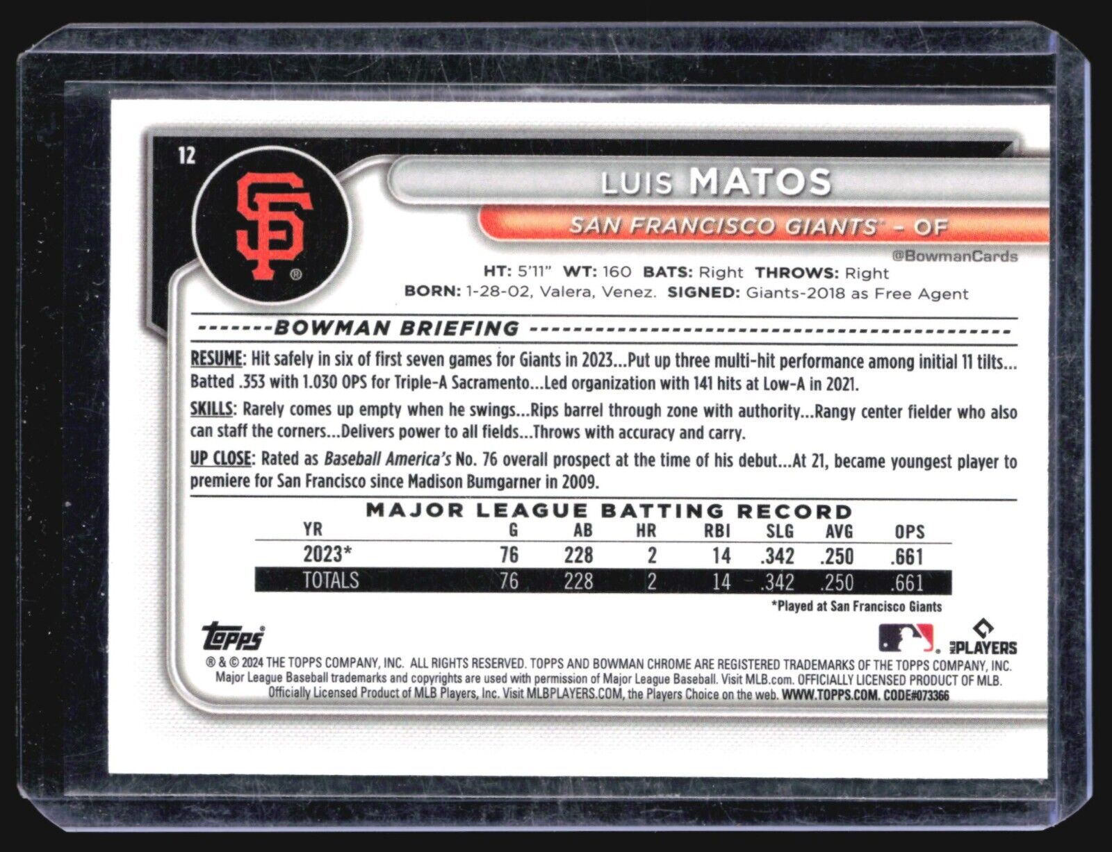 You are purchasing a 2024 Bowman Luis Matos #12. You will receive the exact card in the photographs. Thank you... Read more