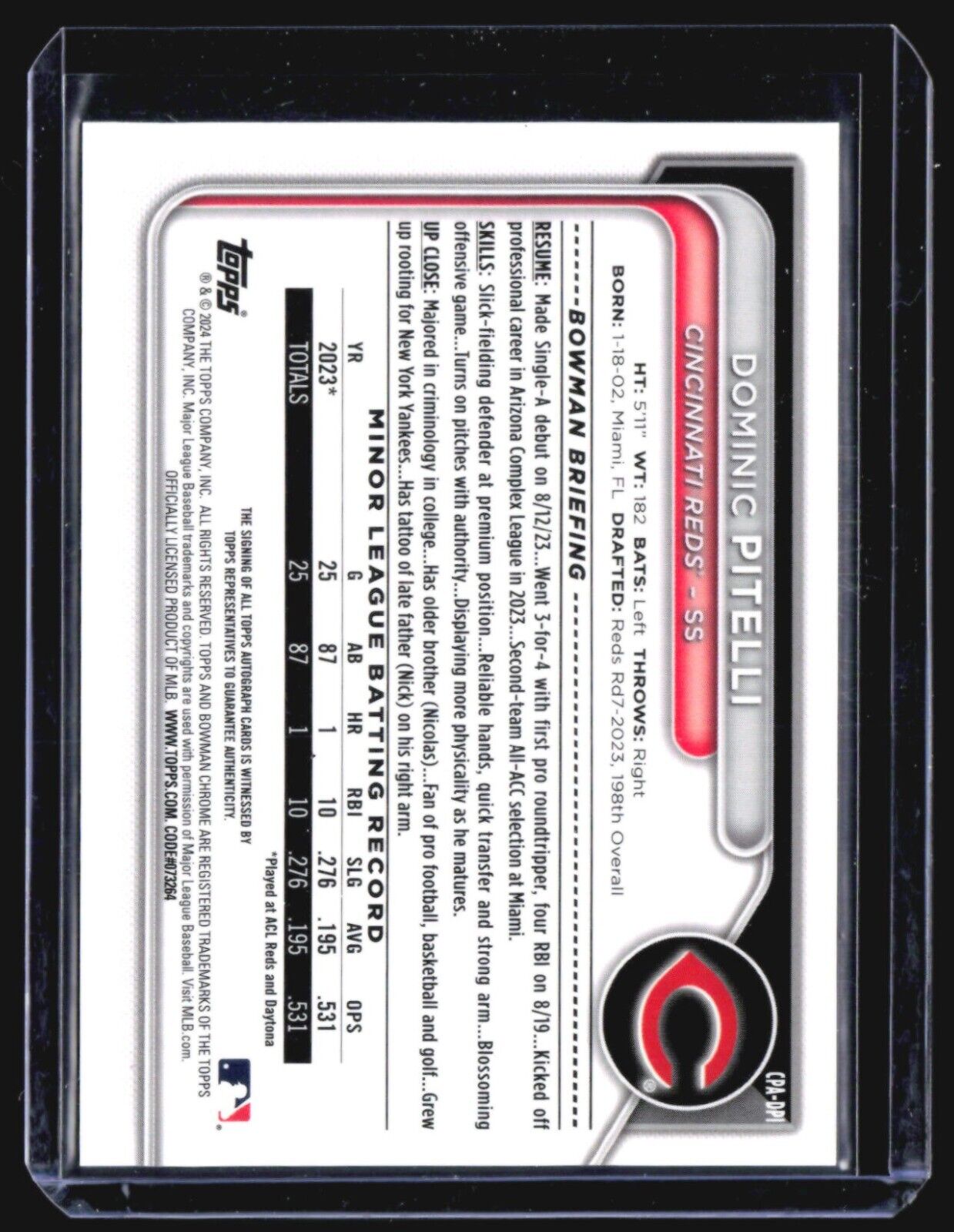 2024 Bowman Chrome - Prospect Autographs #CPA-DPI Dominic Pitelli (AU, RC) Standard Envelope: First 3 items are standard shipping price... Read more