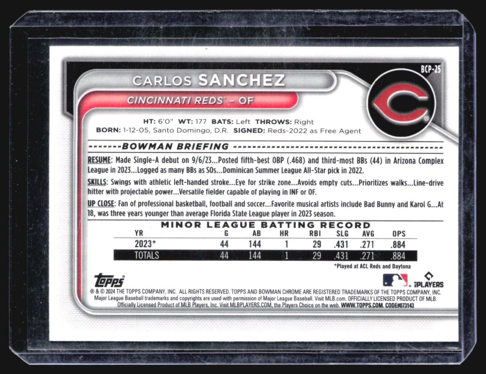2024 Bowman - Chrome Prospects #BCP-25 Carlos Sanchez (RC) 1st