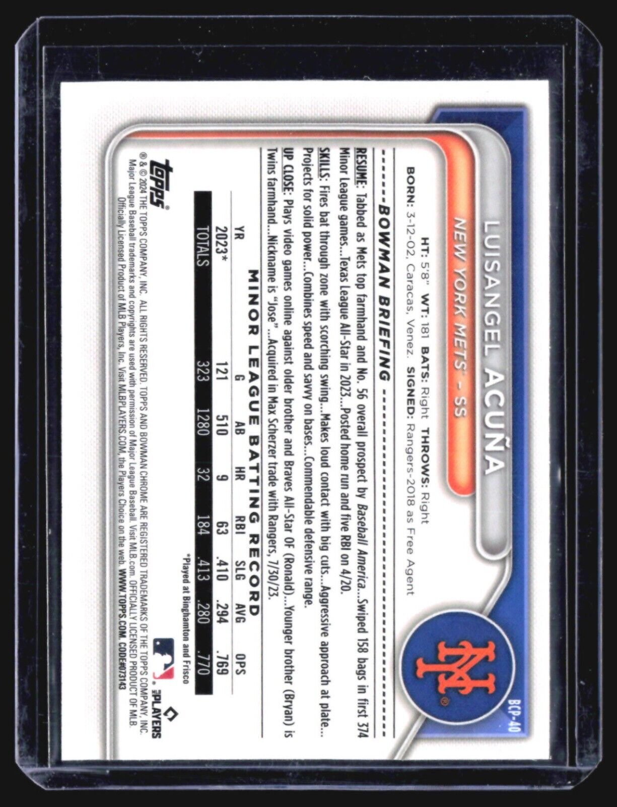 2024 Bowman - Chrome Prospects #BCP-40 Luisangel Acuna (RC) Lunar Flow
